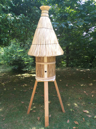 Eine Baumhöhle aus Schilf. Für Stabilbauimker, die den Bienen einen Wohnraum wie in einem hohlen Baum bieten wollen, der aber im Gegensatz zu diesem leicht wie eine Feder ist. So kann diese Beute z.B. auch ohne schweres Gerät hoch an Bäumen befestigt werden.